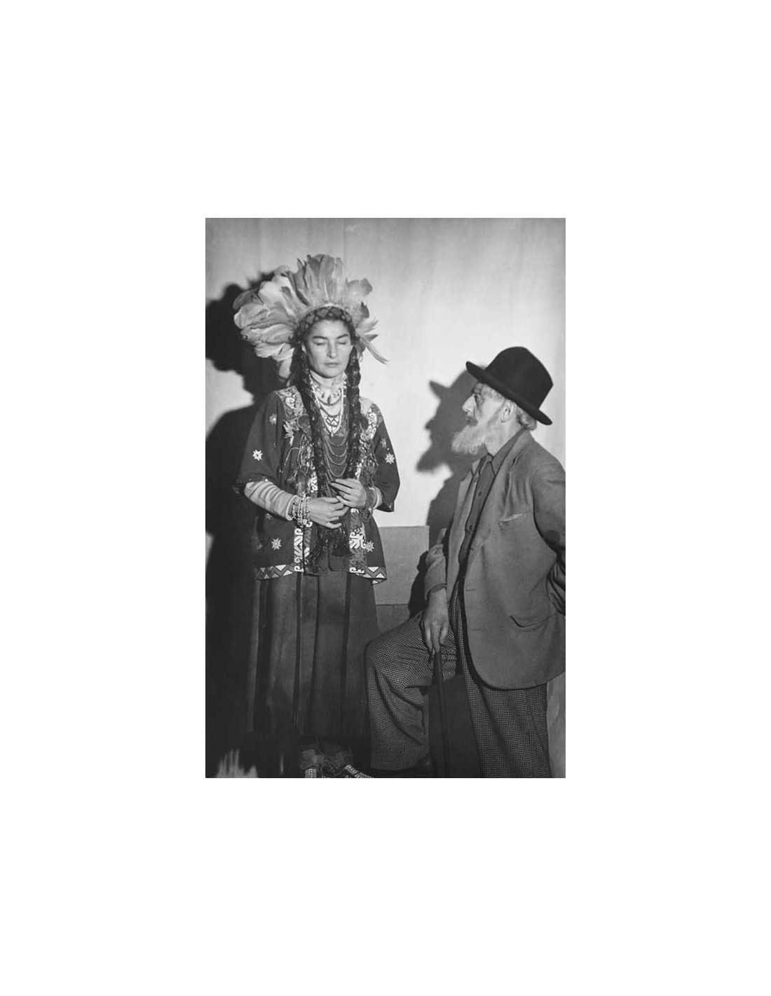 Man Ray avec barbe blanche et chapeau (Walt Whitman), Juliet en indienne, squaw avec coiffe à plumes et longues nattes de cheveux