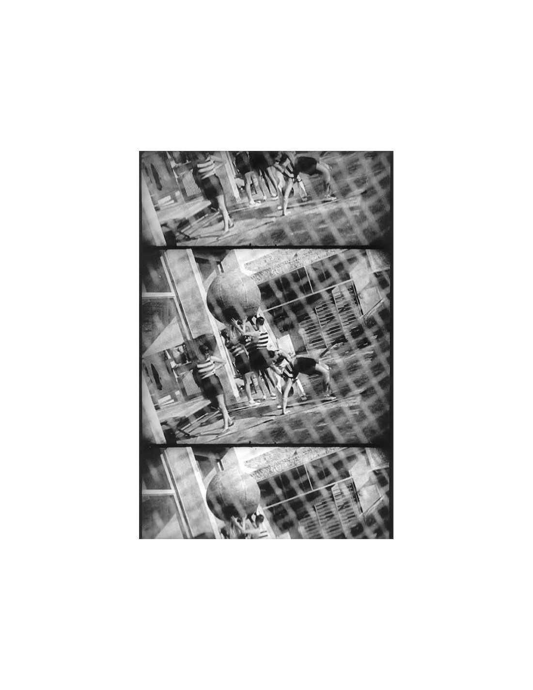 extrait du film de Man Ray - groupe soulevant un gros globe, à travers un grillage
