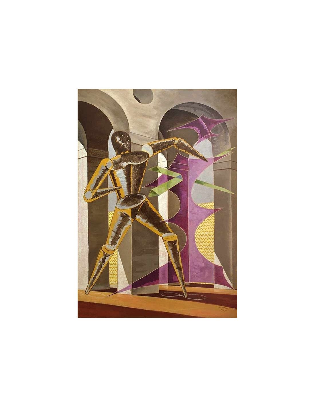 huile sur toile - personnage en cônes devant une arcade