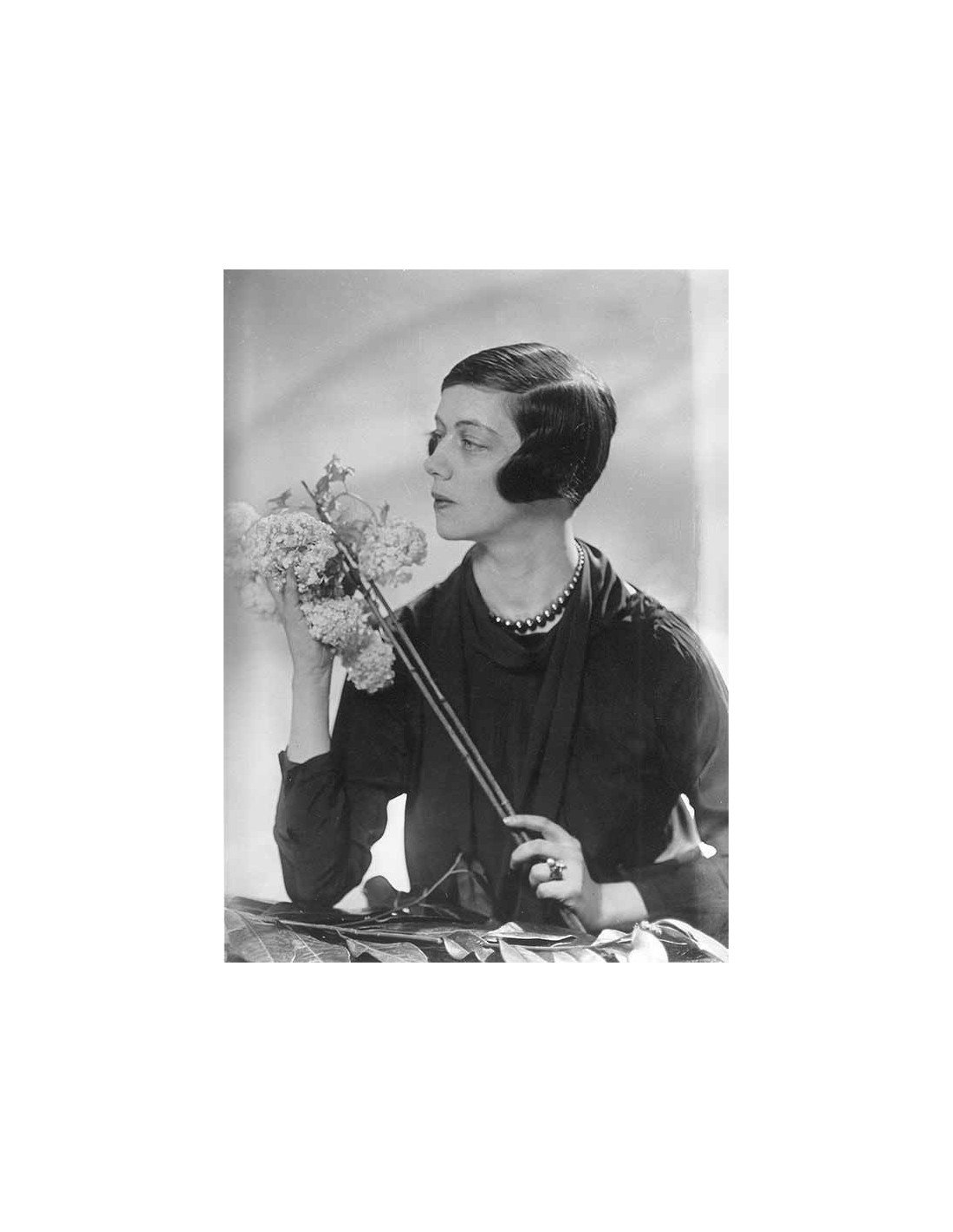 portrait femme de profil tenant fleur à la main plan en buste