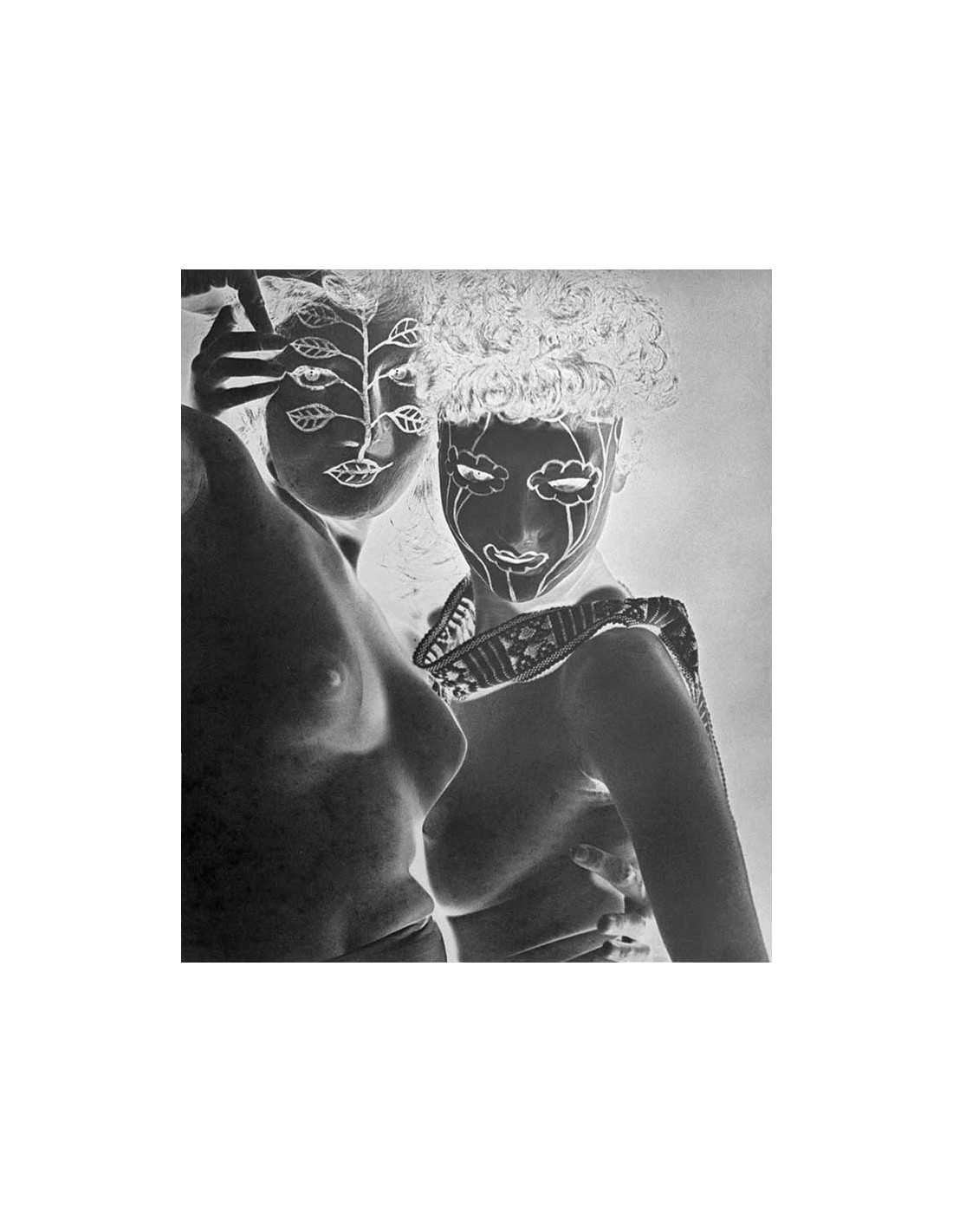 Femmes Juliet et Margaret Nieman Photographie HD (300 DPI Tiff) 1945 ca - ref : 108/09 120,00 € femmes entrelacées et nues Juliet portant un masque à fleurs et Marguerite portant un masque à feuilles Ajouter au panier