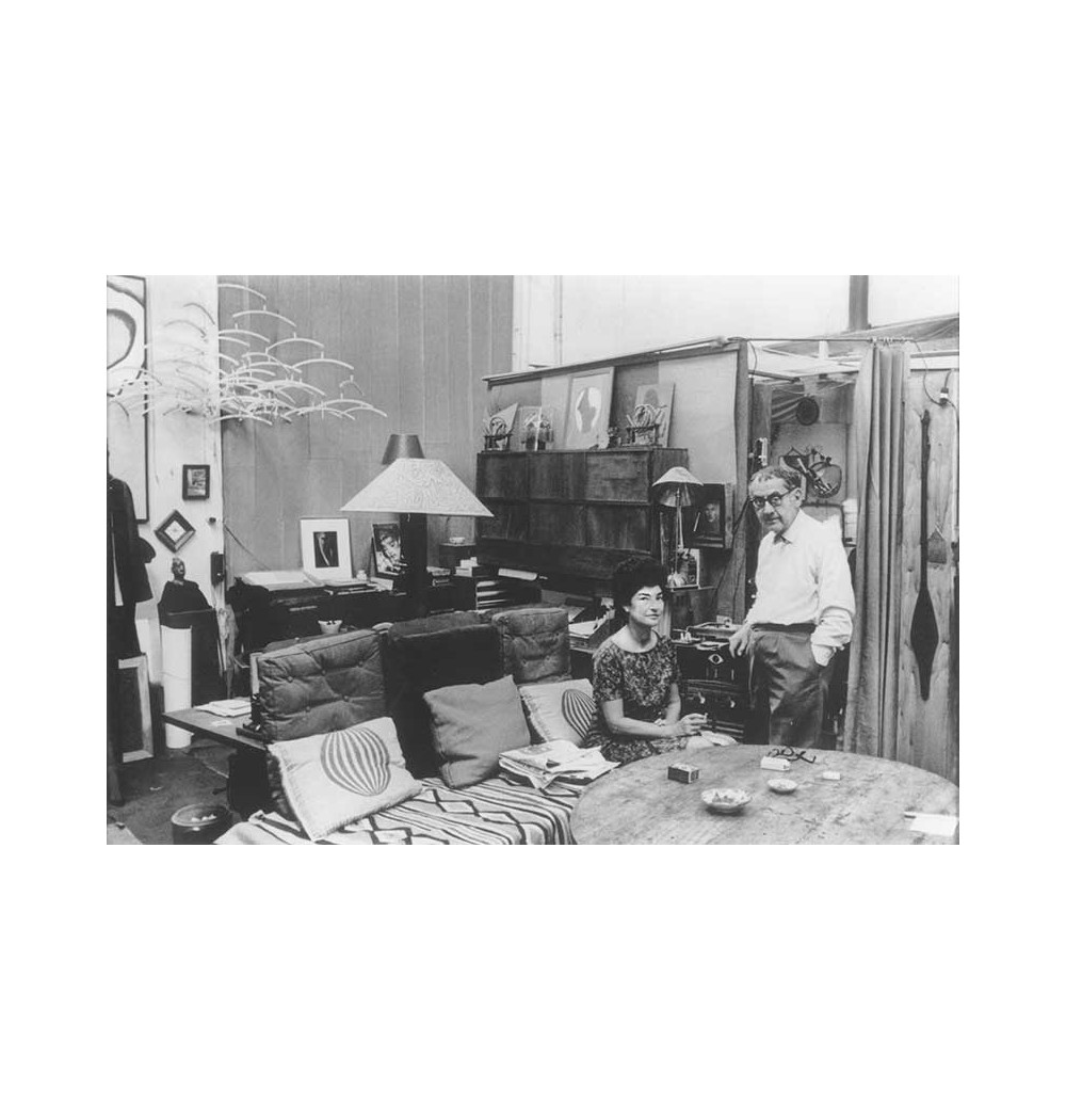 Man Ray et Juliet dans le studio de la rue Férou à Paris, avec l'objet "Obstruction" dans le fond photo : René Basset