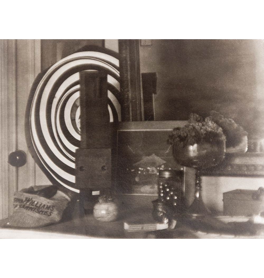 Détail studio à New York avec objet "By itself", New York (roulement habile) et plaque rotative de Duchamp