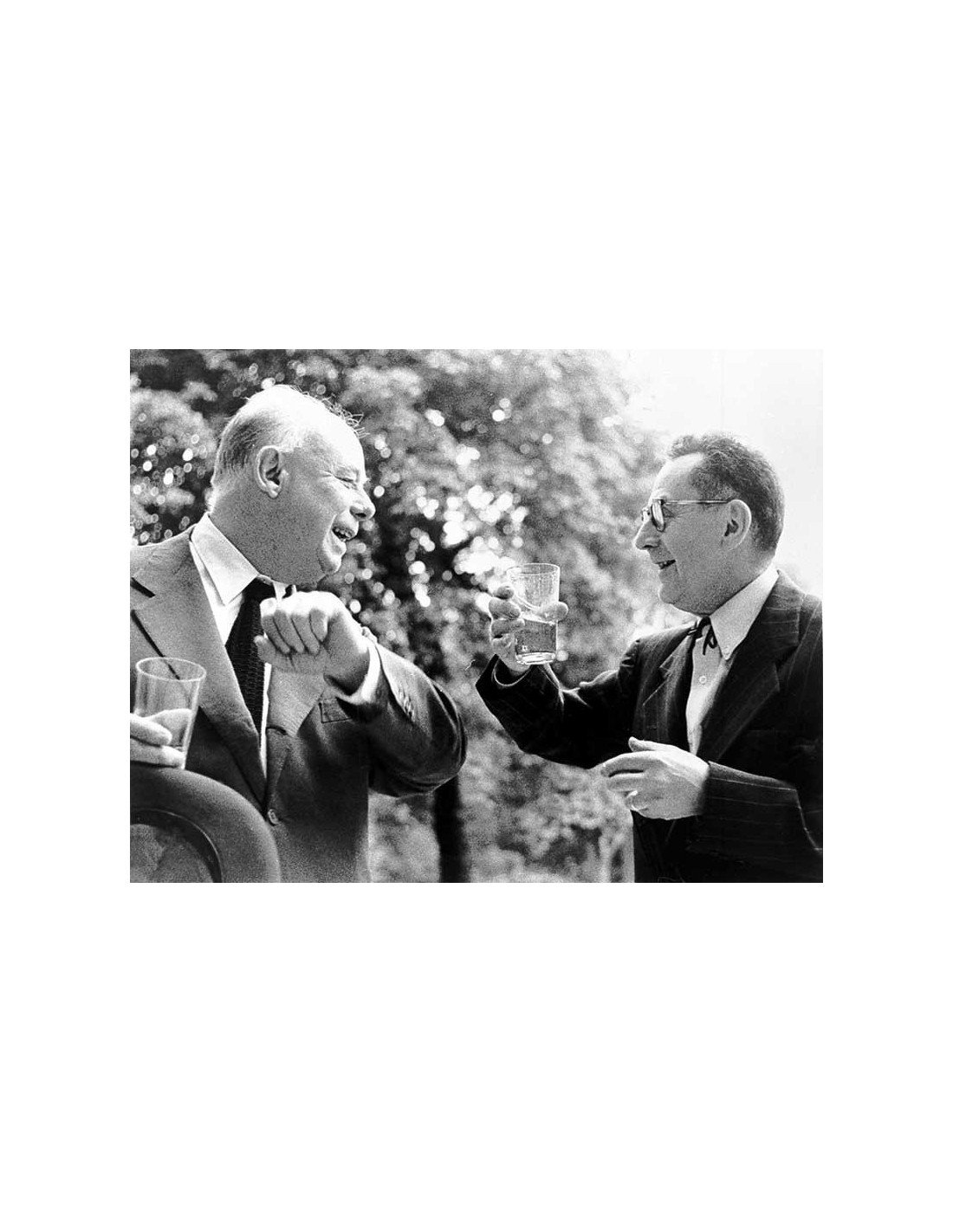 Man Ray et Jean Renoir, en pleine discussion animée et riant, verres à la main