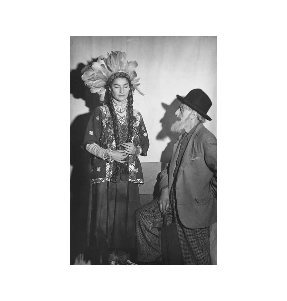 Man Ray avec barbe blanche et chapeau (Walt Whitman), Juliet en indienne, squaw avec coiffe à plumes et longues nattes de cheveux