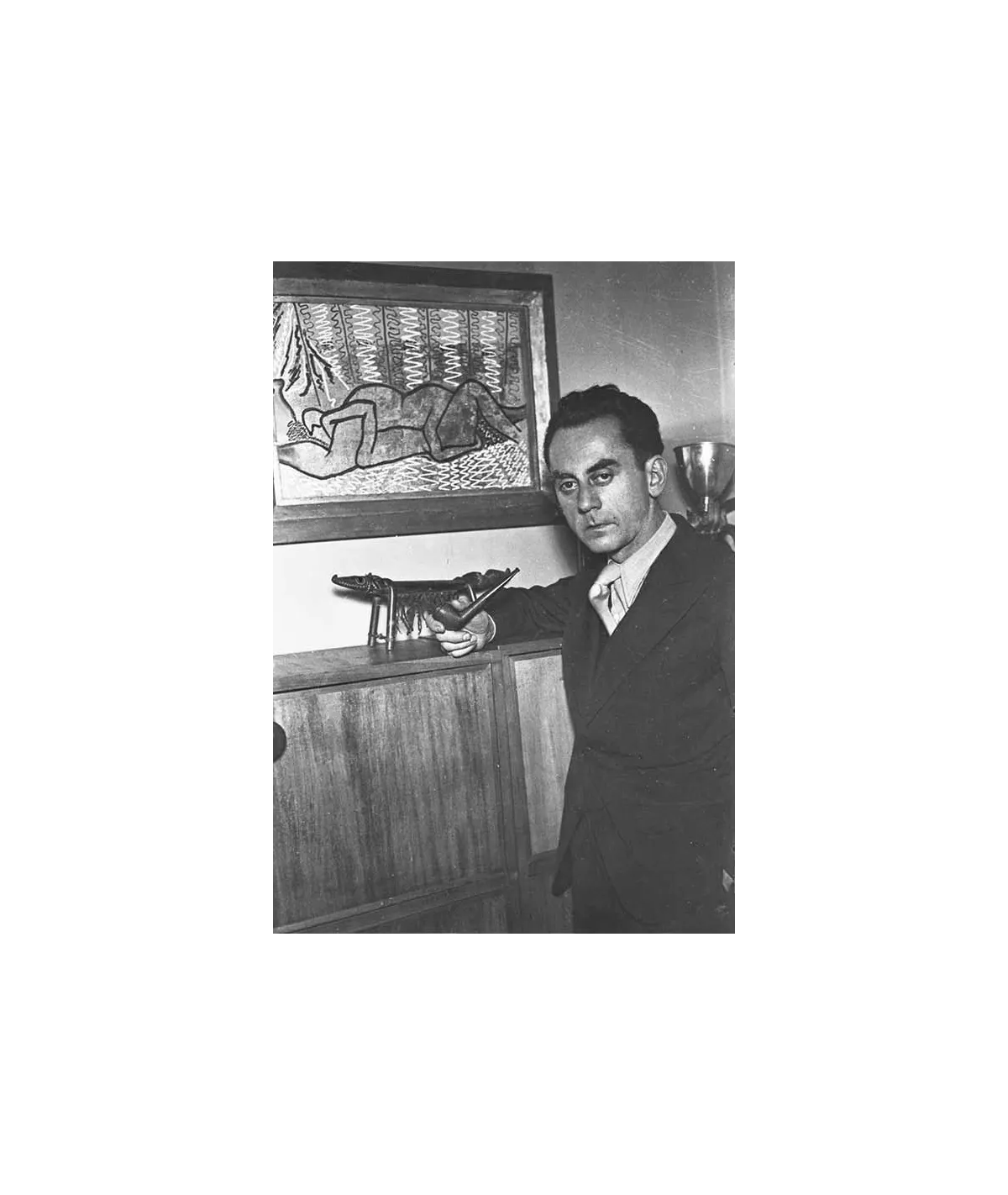 portrait devant un de ses tableaux "La décoration des corps rationnels"