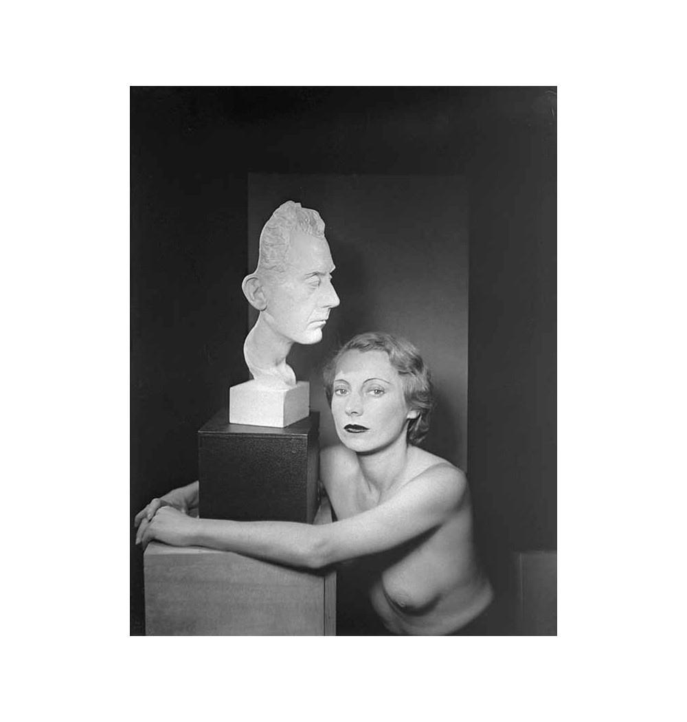 femme non identifiée, torse nu, entourant des ses deux mains la tête de Man Ray