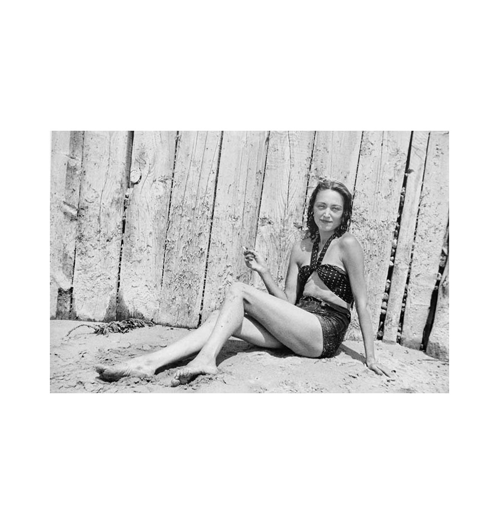 portrait sur la plage de La Garoupe en maillot de bain devant palissade, cigarette à la main