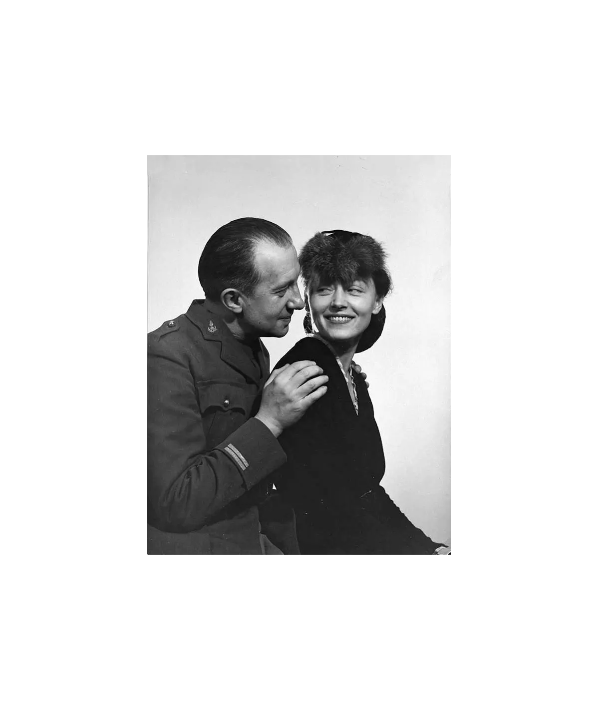Paul Eluard en militaire, de profil derrière Nusch se retournant en souriant