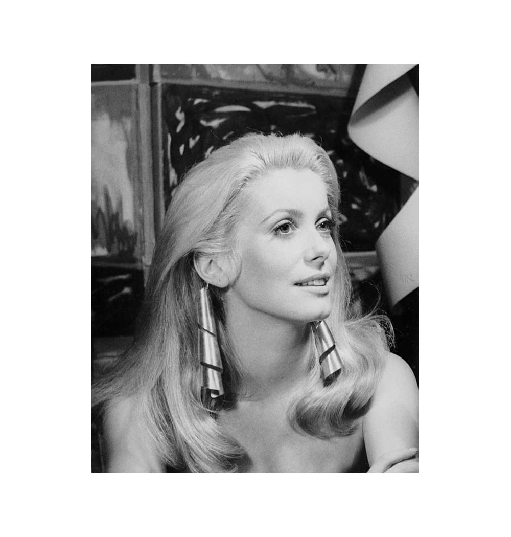 femme de profil portant boucles d'oreilles Lampshade de Man Ray