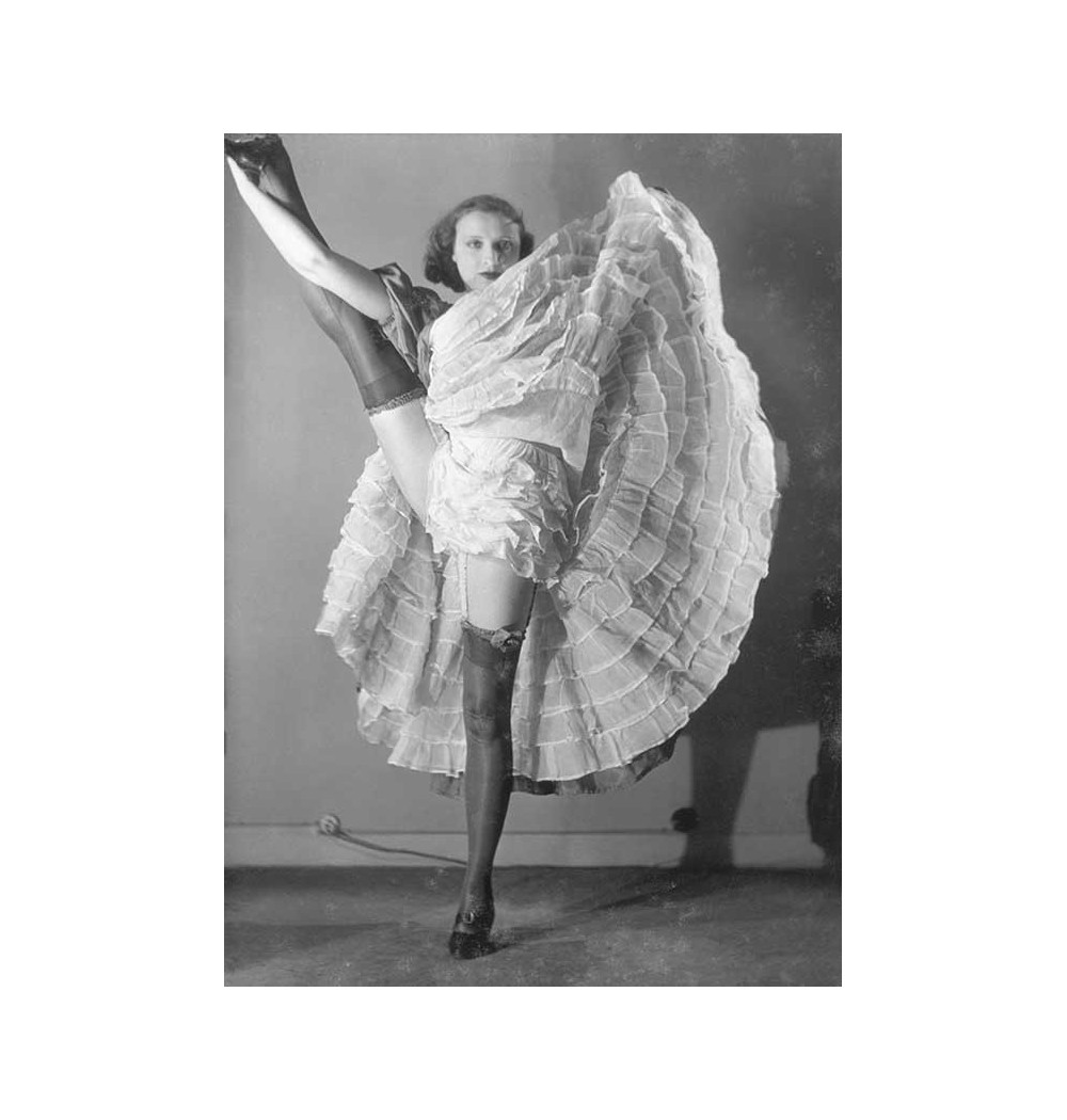 femme debout avec une jambe en l'air dans sa robe à froufrou