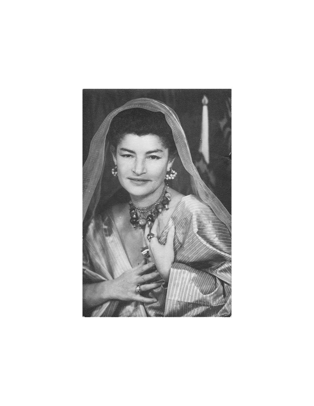 portrait de femme, voile, cierge au fond, colliers, bagues, boucles d'oreille