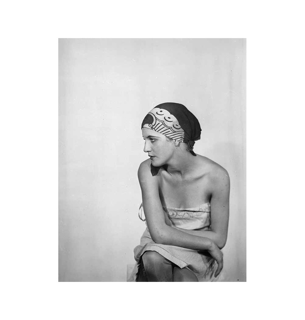 portrait femme assise turban dans les cheveux