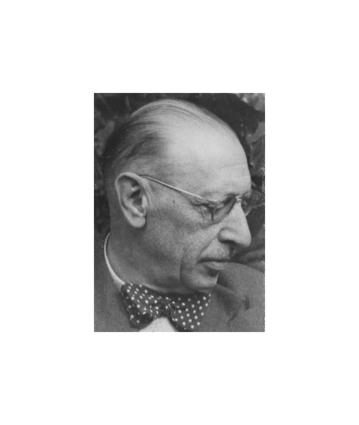 portrait tête penchée de profil avec lunette et noeud papillon - compositeur