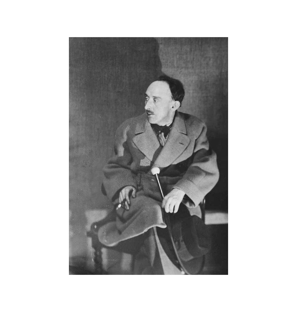 portrait homme de profil assis manteau, canne - sculpteur anglais
