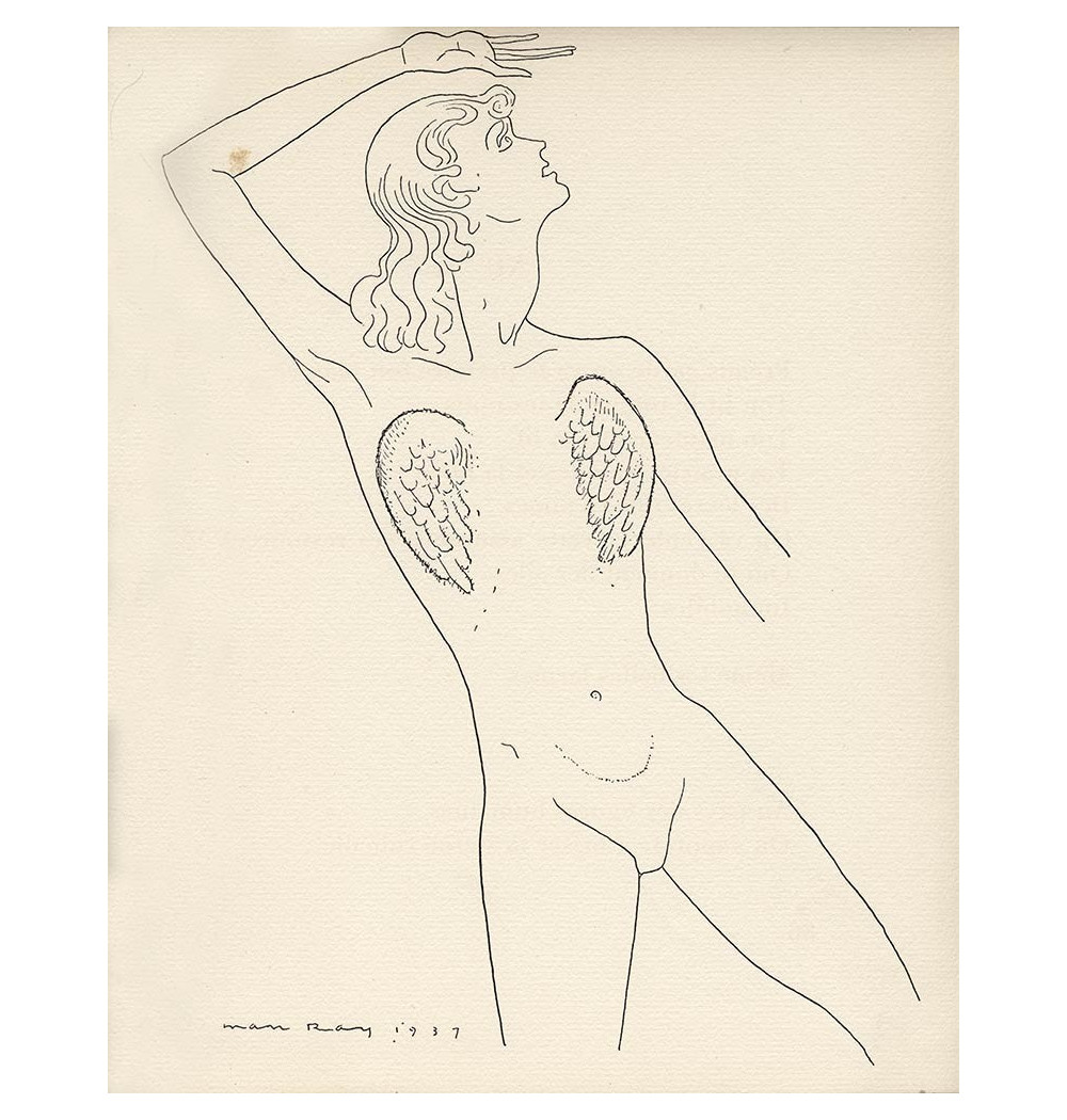 Nu ailé, dessin de Man Ray, dans le livre Les Mains Libres, p.87