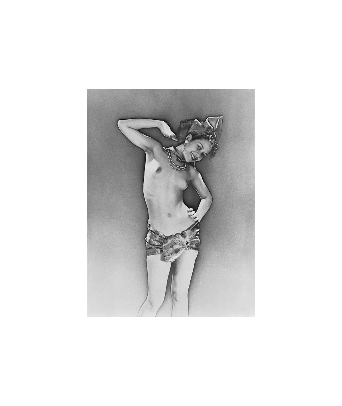 Adrienne Fidelin, nue portant un foulard autour de la taille et dansant - solarisation