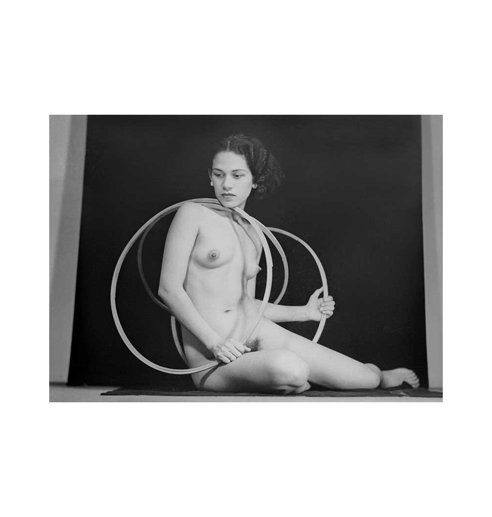 Adrienne Fidelin, femme nue assise à l'intérieur de cerceaux