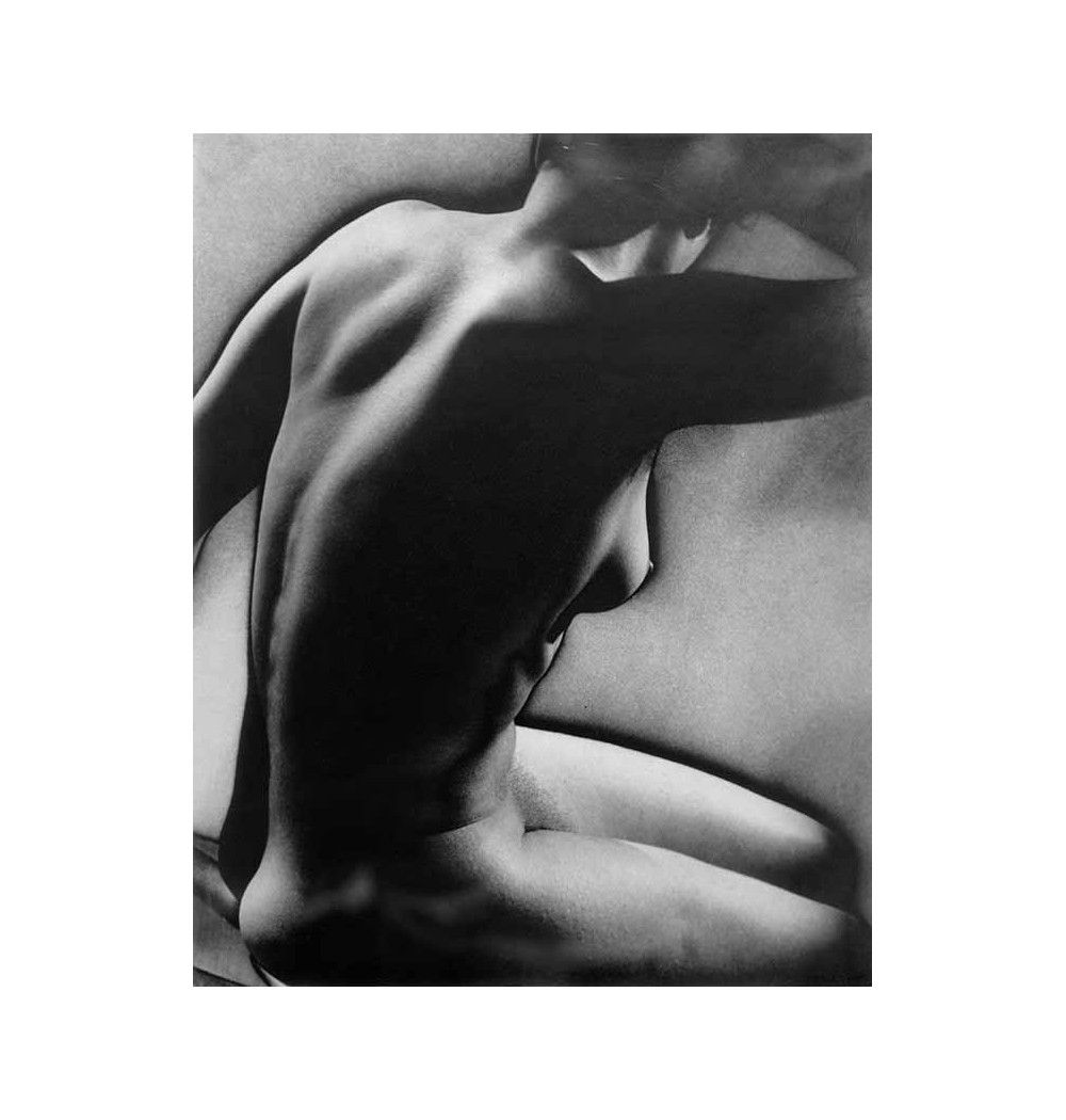 femme non identifiée, nue assise de 3/4 dos - solarisation