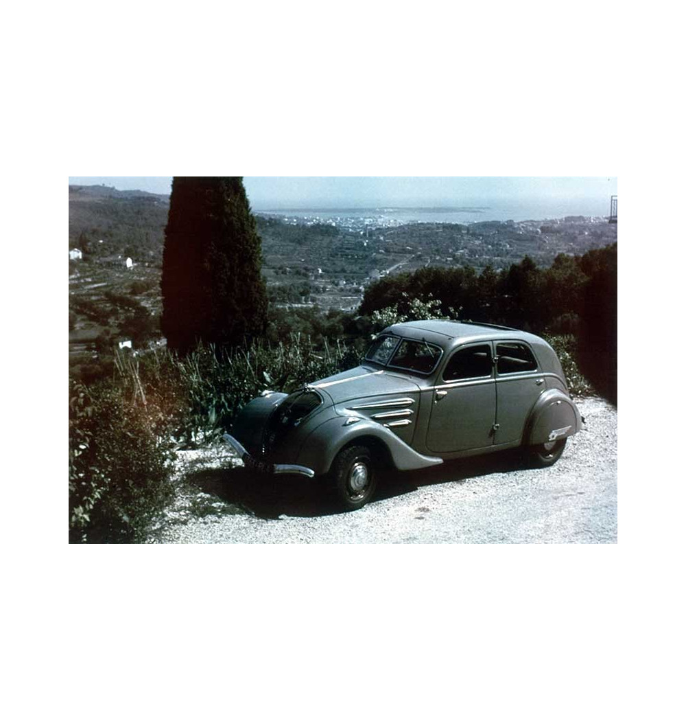 voiture de Man Ray, midi de la France, panoramique sur paysage avec mer méditerranée au loin