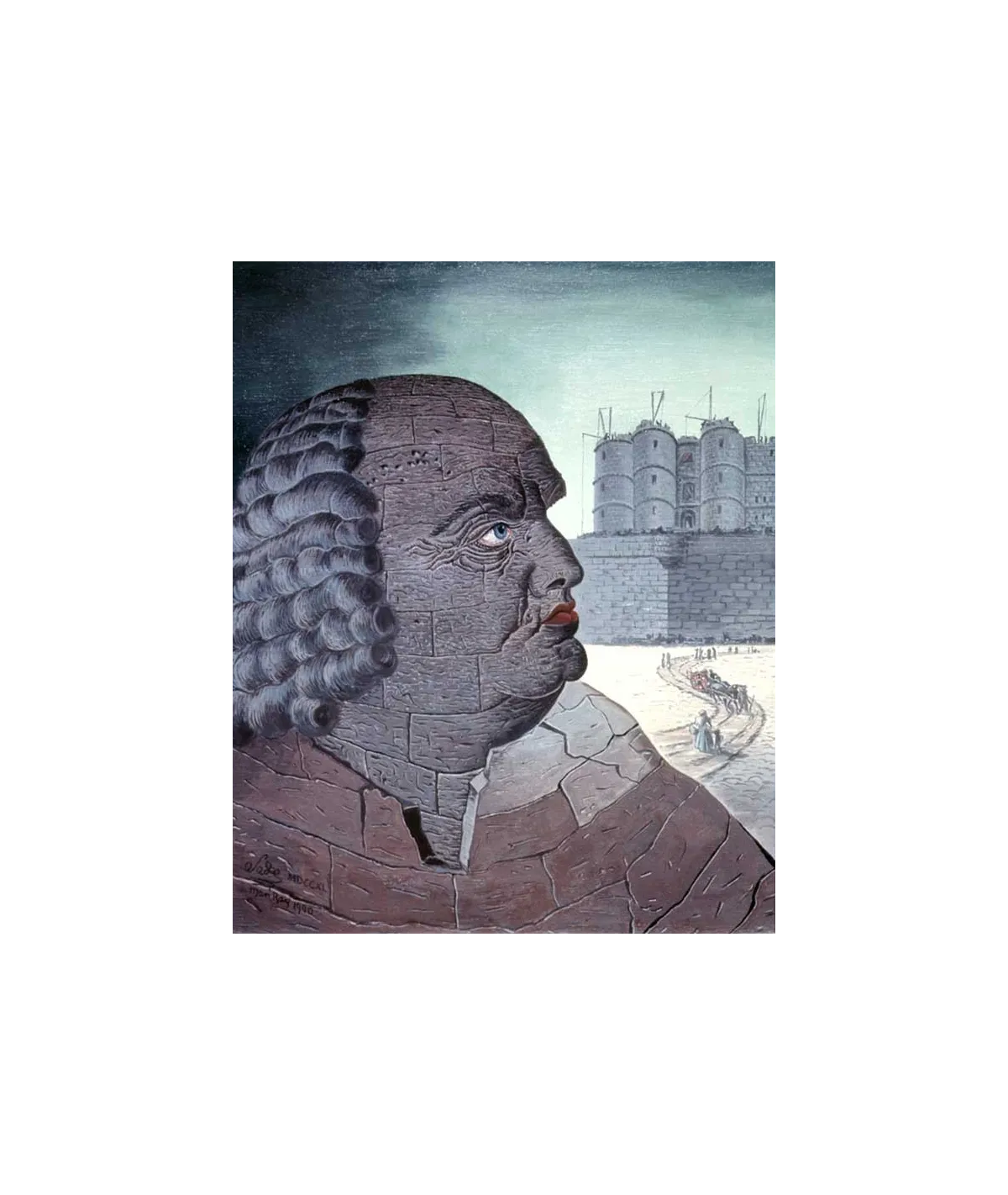 2 ème peinture - portrait du marquis de profil et Bastille en arrière plan indiqué MDCCXL (1740)