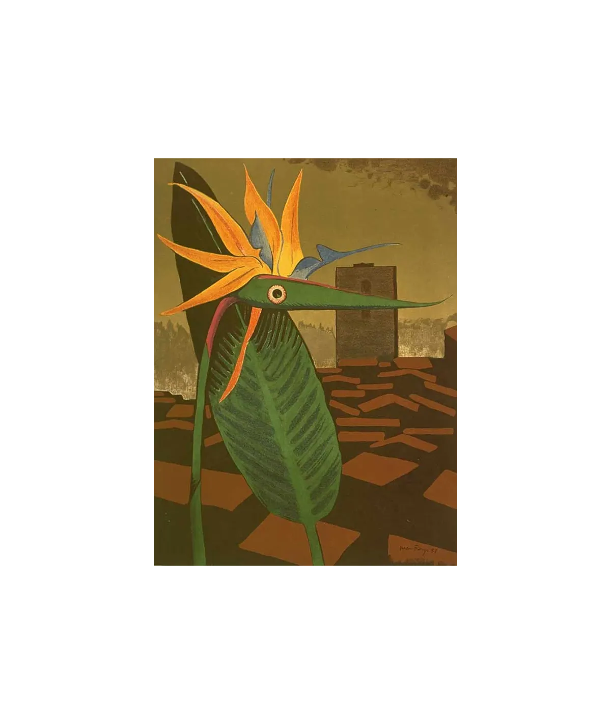 Huile sur toile, une fleur "oiseau du paradis" Strelitzia