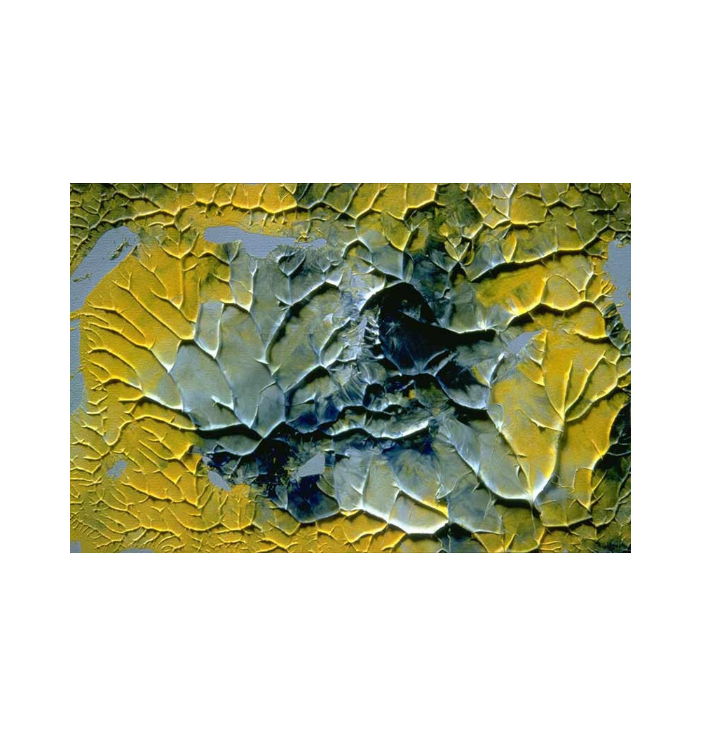 peinture à l'acrylique - en relief bleu sur fond jaune