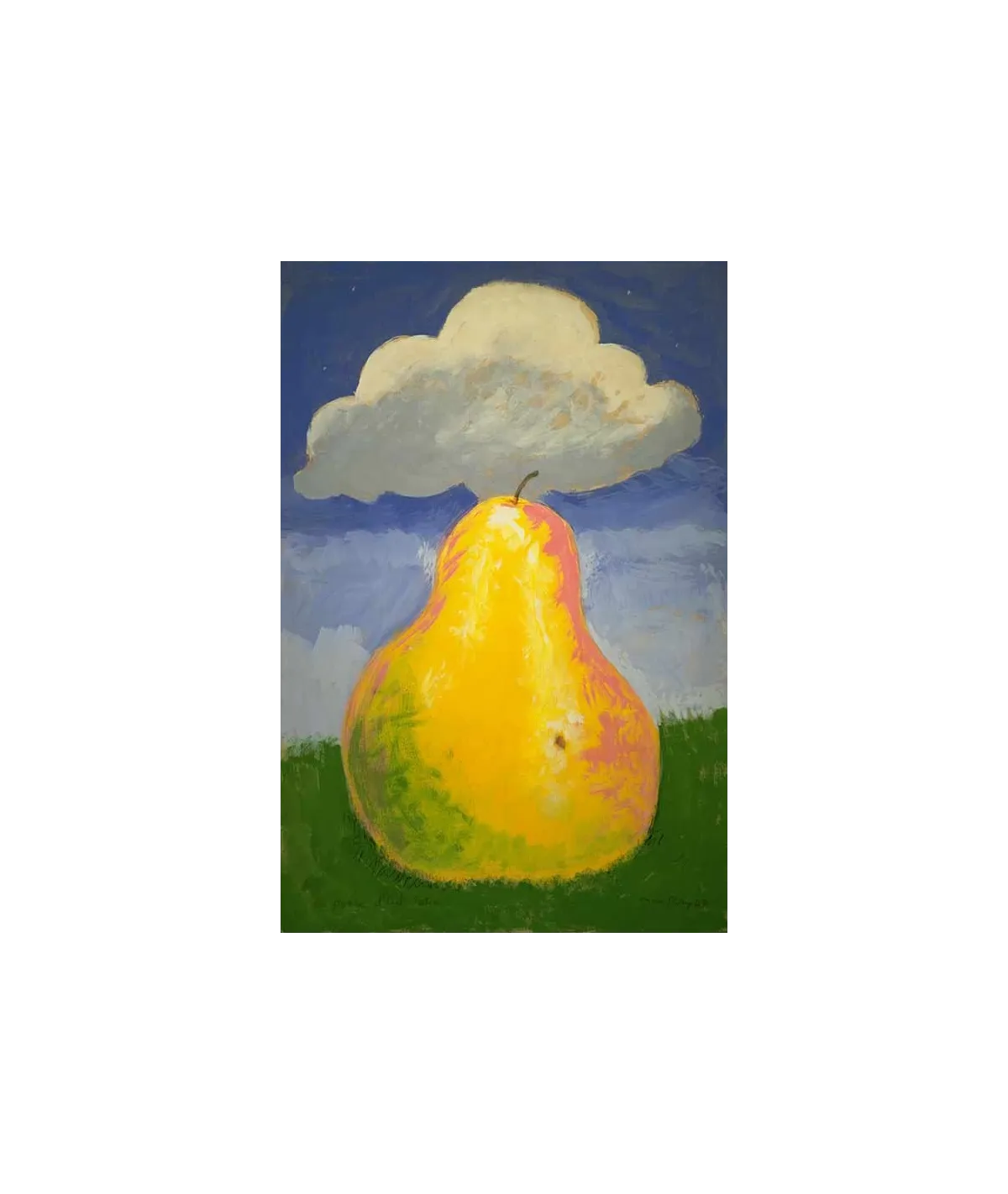 huile sur toile - poire dans l'herbe couronné d'un nuage