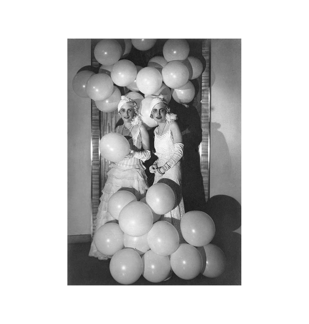 2 femmes avec ballons lors du Bal Blanc donné par la comtesse Pecci-Blunt