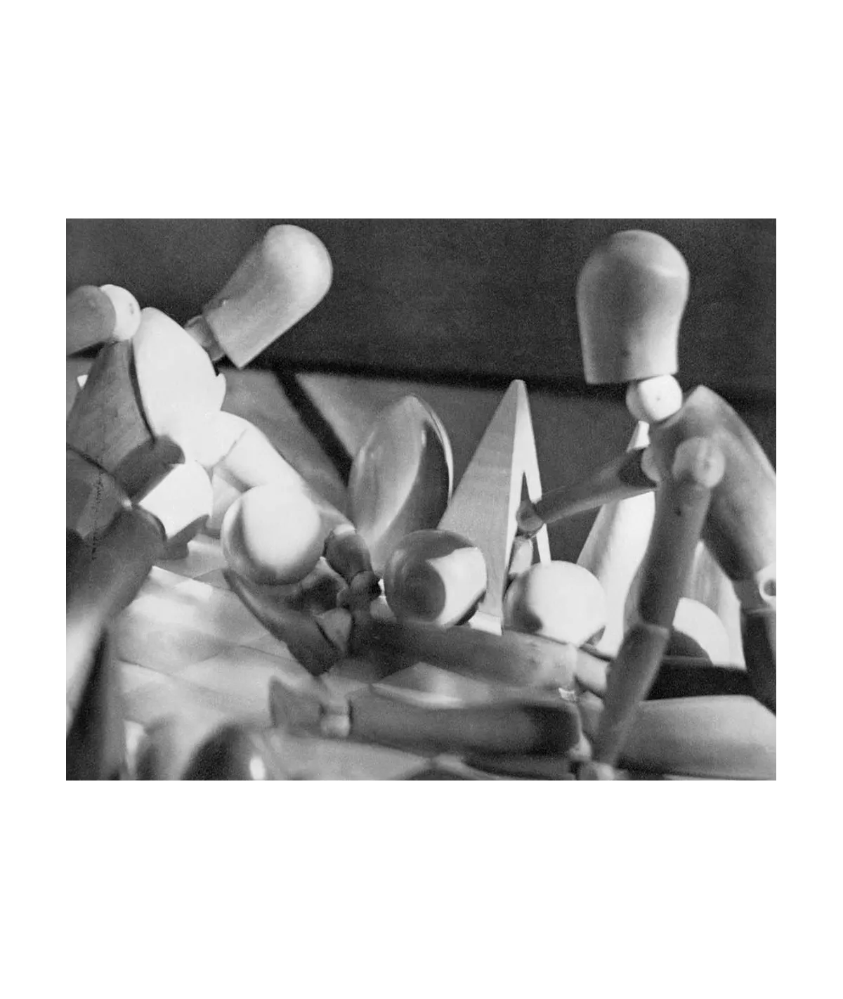 End Game, figurine en bois (Woodman) avec boules et pyramide