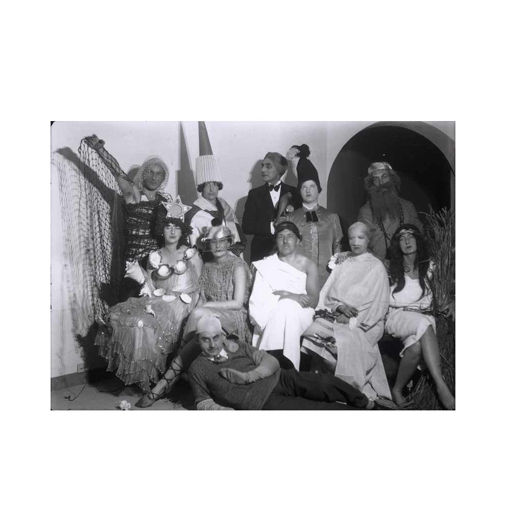 groupe de personnes déguisées pour Bal donné à la villa Noailles (Hyères - Var) durant le tournage du film "Les Mystères du Château du Dé"