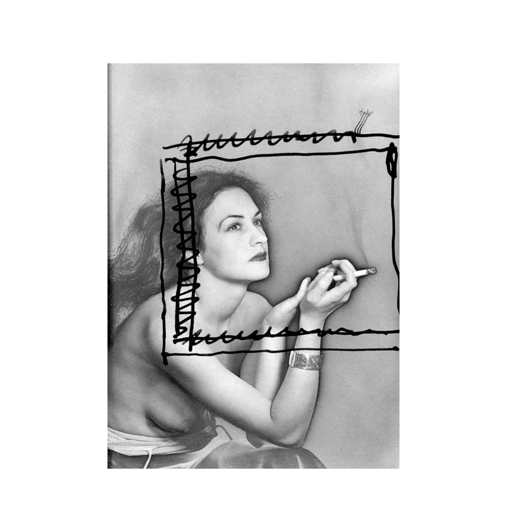 femme torse nu fumant une cigarette - traits de cadrage solarisation