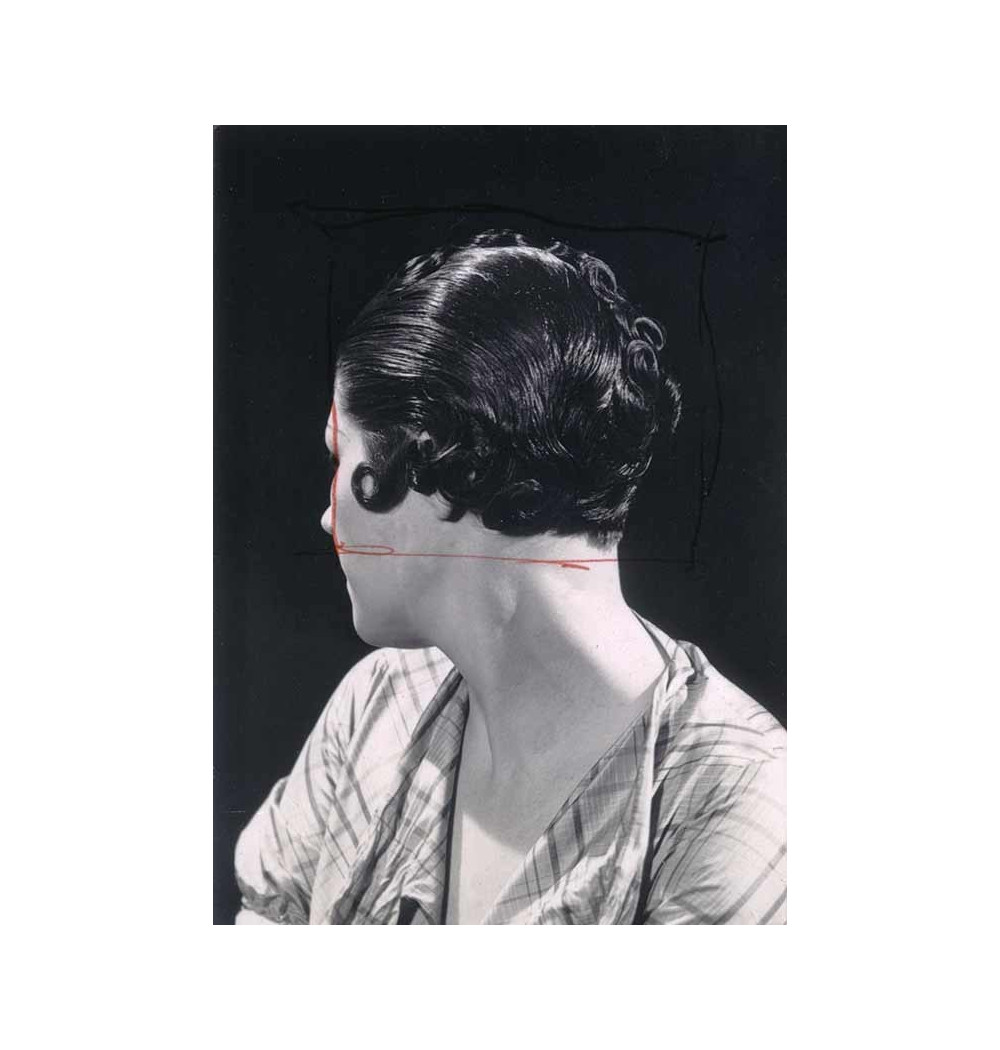 coiffure d'une femme regardant en arrière avec trait de cadrage
