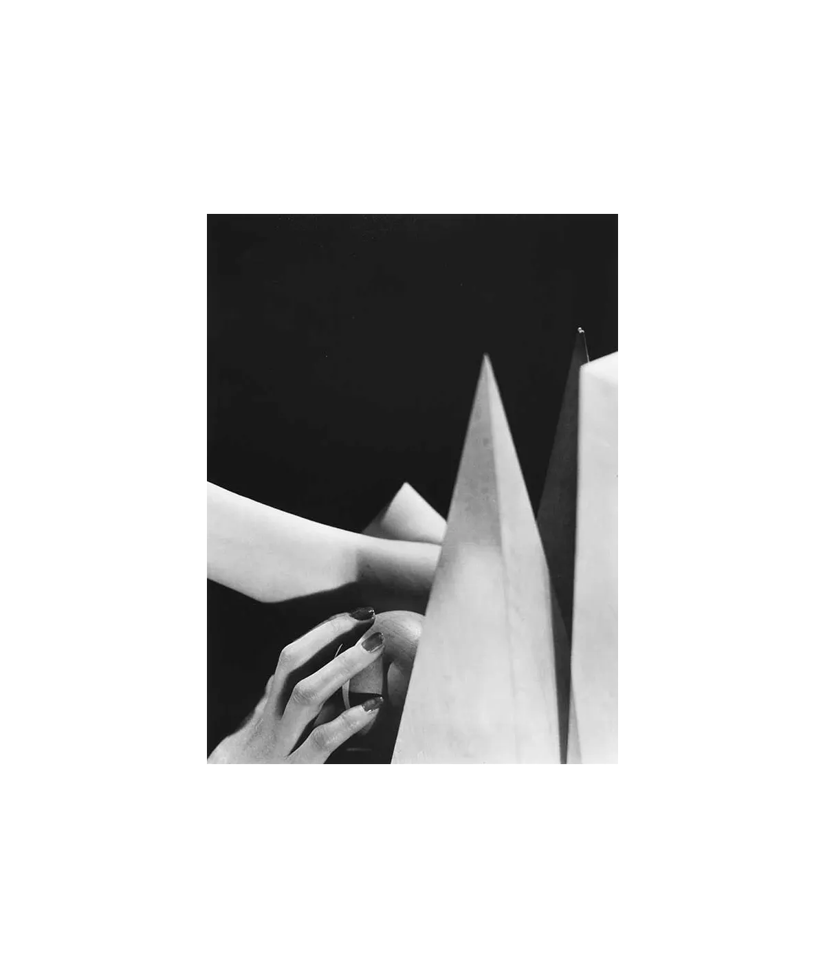 objets géométriques, pyramide, boule avec main de Nusch Eluard