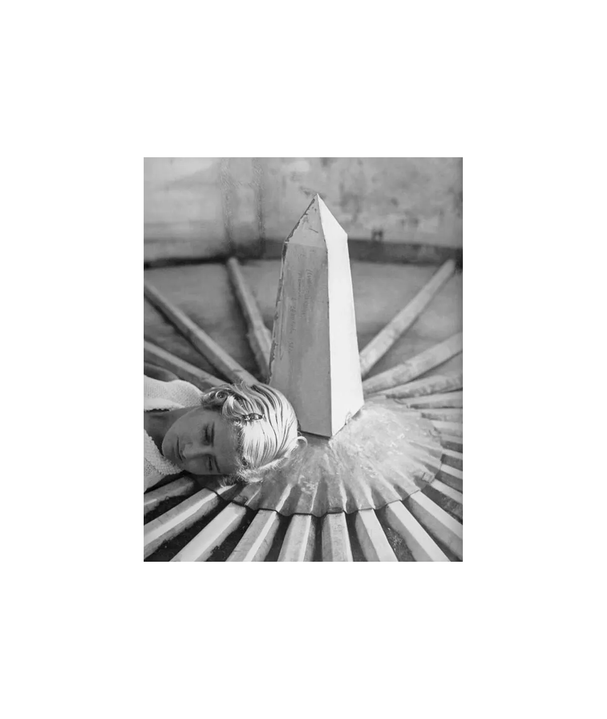 Jacqueline Breton, visage de femme couché sur une grande roue en bois