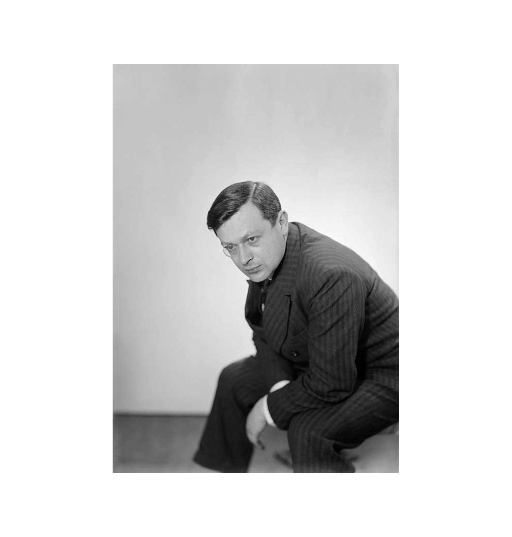 portrait homme de 3/4 profil assis, penché en avant monocle - écrivain