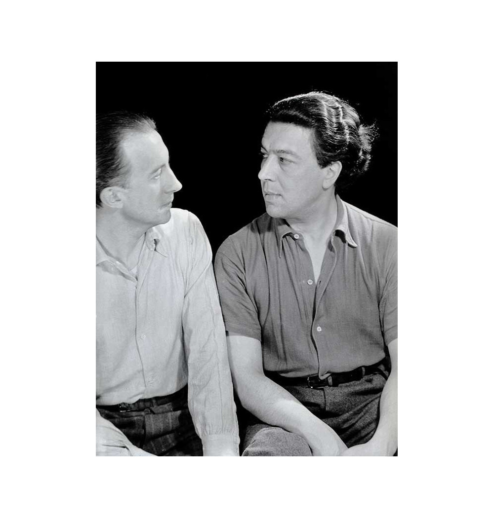 portrait hommes assis l'un à côté de l'autre, se regardant - écrivains