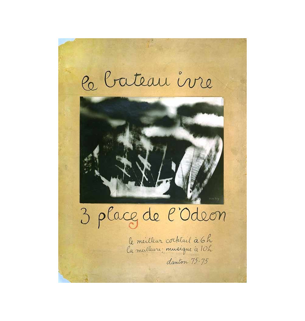affiche pour le café Le Bateau Ivre, avec rayographie de Man Ray