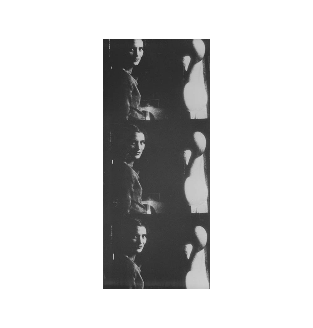 extract from Man Ray's movie woman Lee Miller looking at camera in front of Brancusi's statue