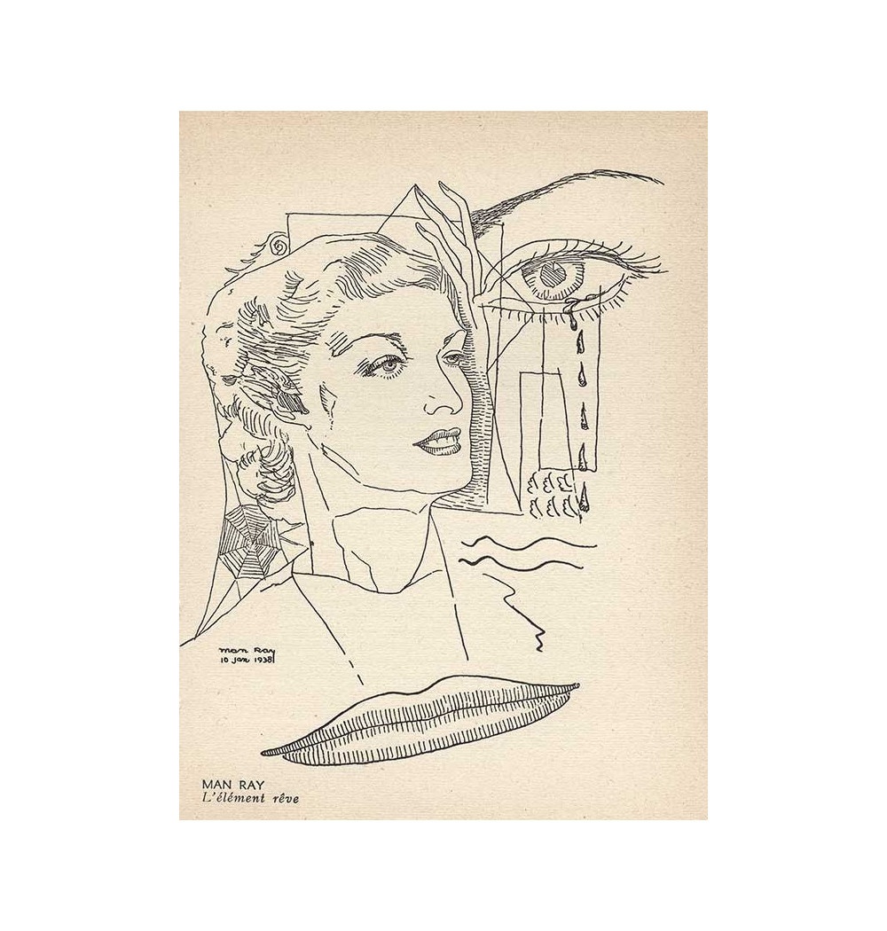 Drawing illustrating a text by Paul Eluard: I dream that I don't sleeppublished in Septième Cahiers GLM - March 1938, p.87