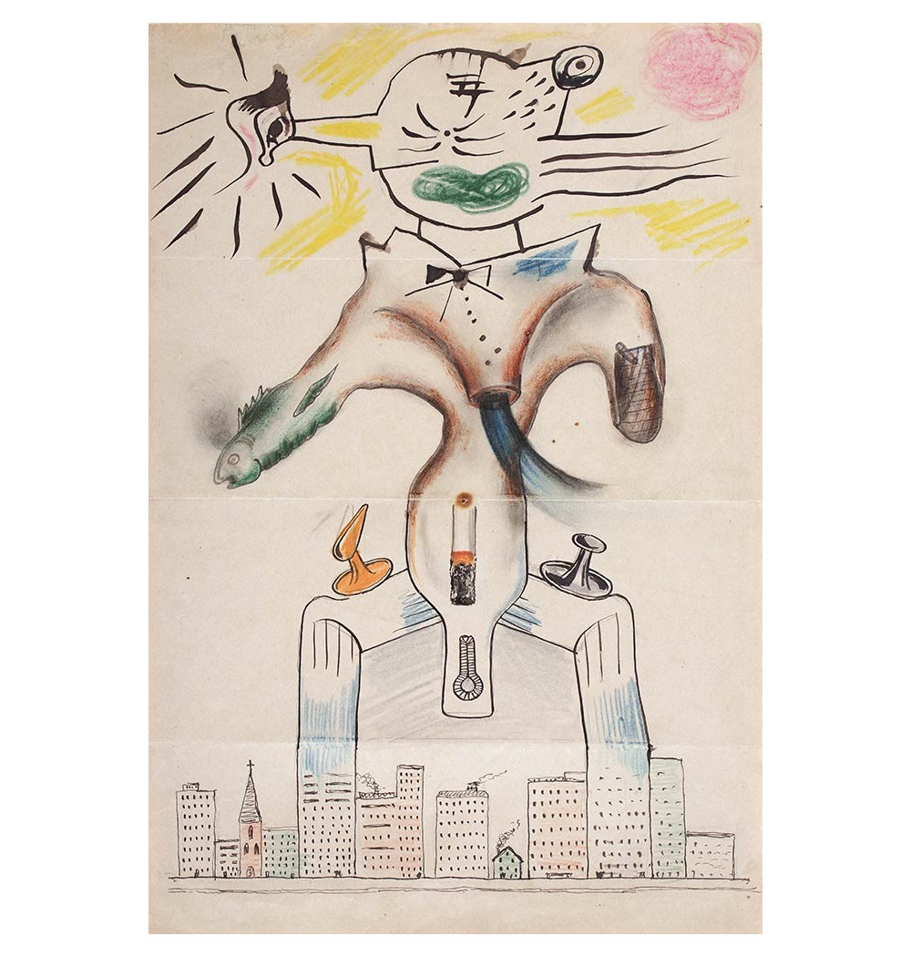 Collective, literary and poetic game of the surrealists consisting of forming a sentence, subject-verb-complement, without knowing what precedes it. The corpse - exquisite - will drink - the new wine, first draft made, gives the name to the game. The process is quickly transposed to drawing.