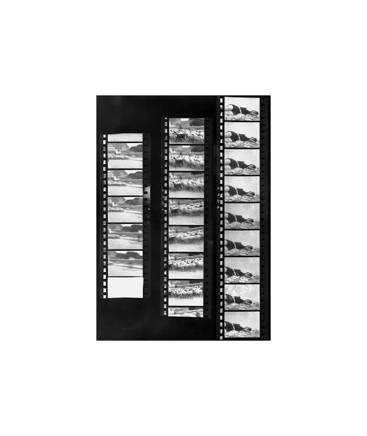 extract from Man Ray's movie, 3 film strips, lanscape, sheeps, lying woman in swimsuit
