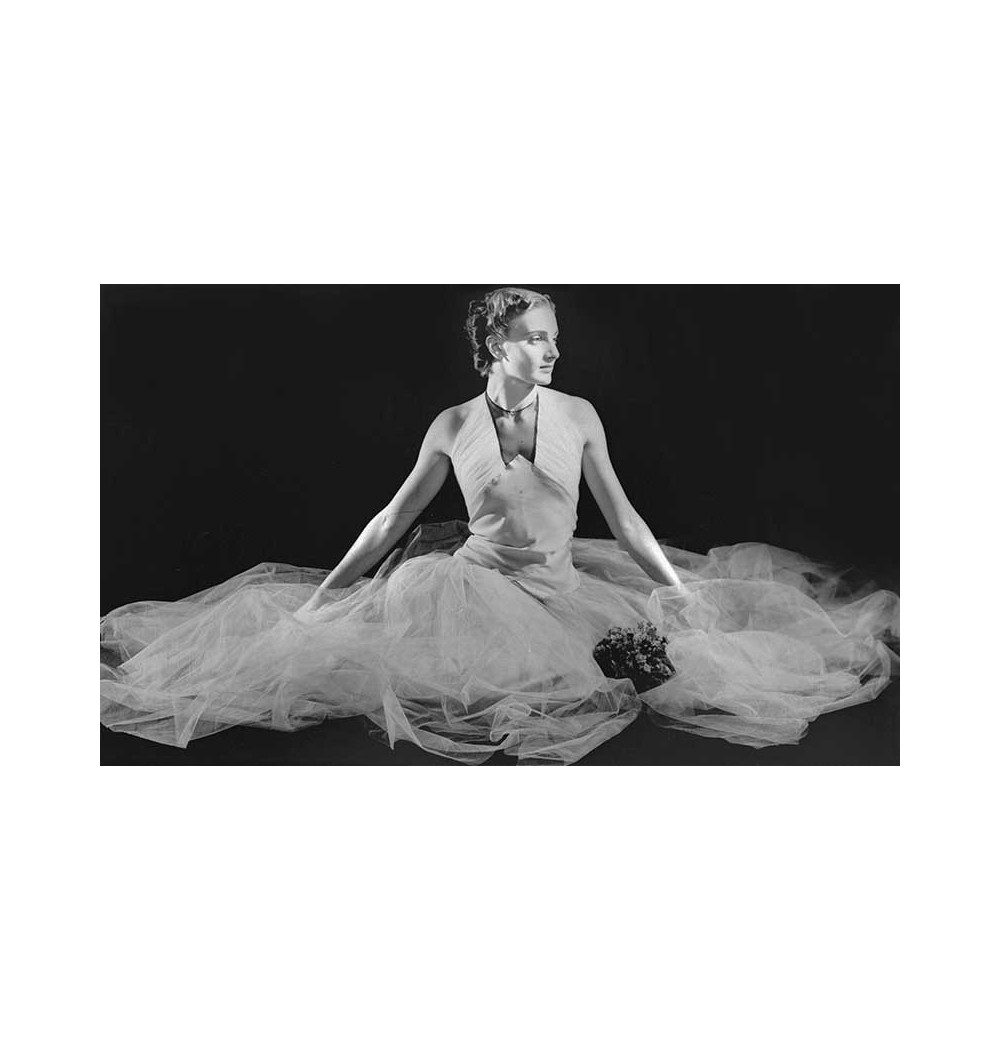model woman sitting muslin dress
