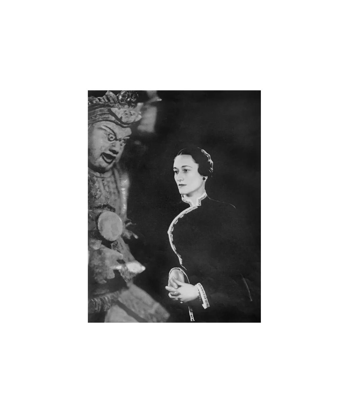Mrs Wallis Simpson, Duchess of Windsor, wearing Mainbocher. Published in Harper's Bazaar in June 1936, with title: Mrs Ernest Simpson, the most famous american in london, wears a Chinese dinner dress