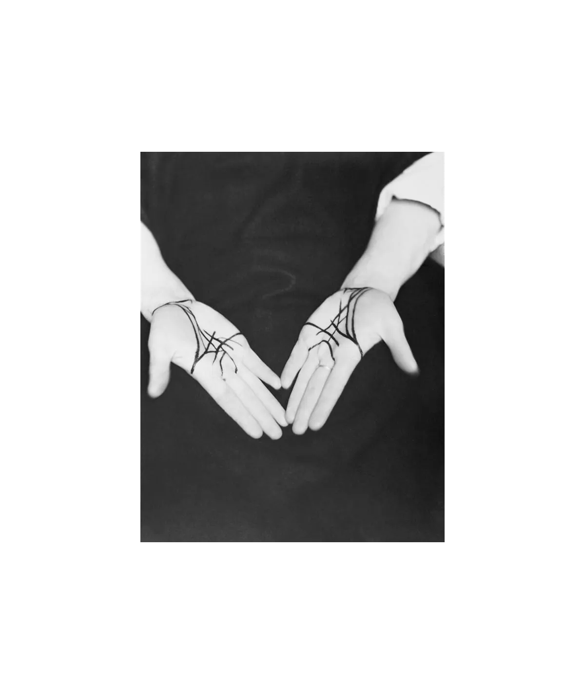 extract from Man Ray's movie drawn hands life lines inside the palm redrawn