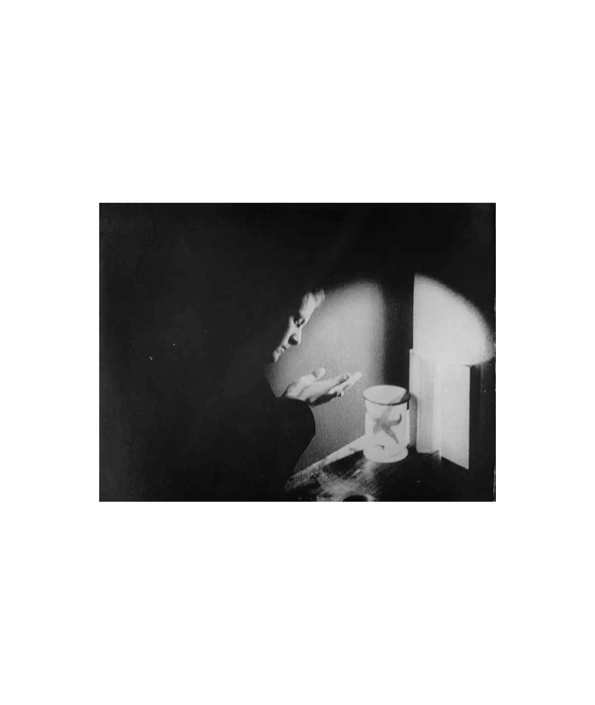 extract from Man Ray's movie lamp light star-fish in bowl person in front of it hands opened