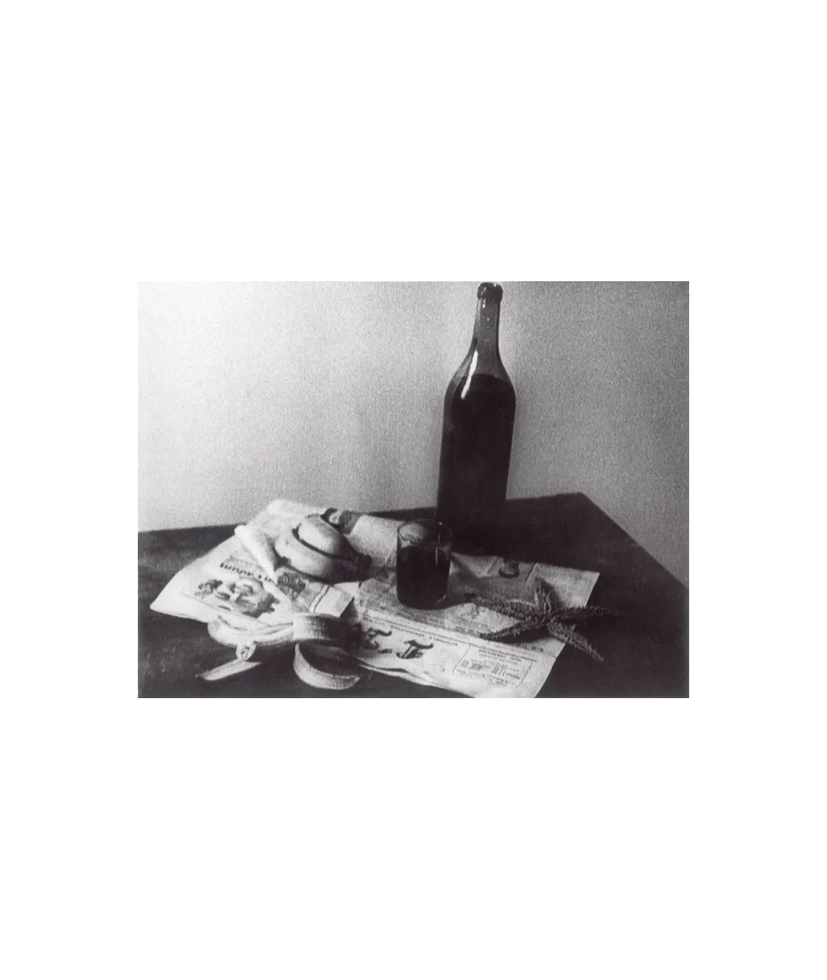 extract from Man Ray's movie wine bottle star-fish newspaper banana skin glass