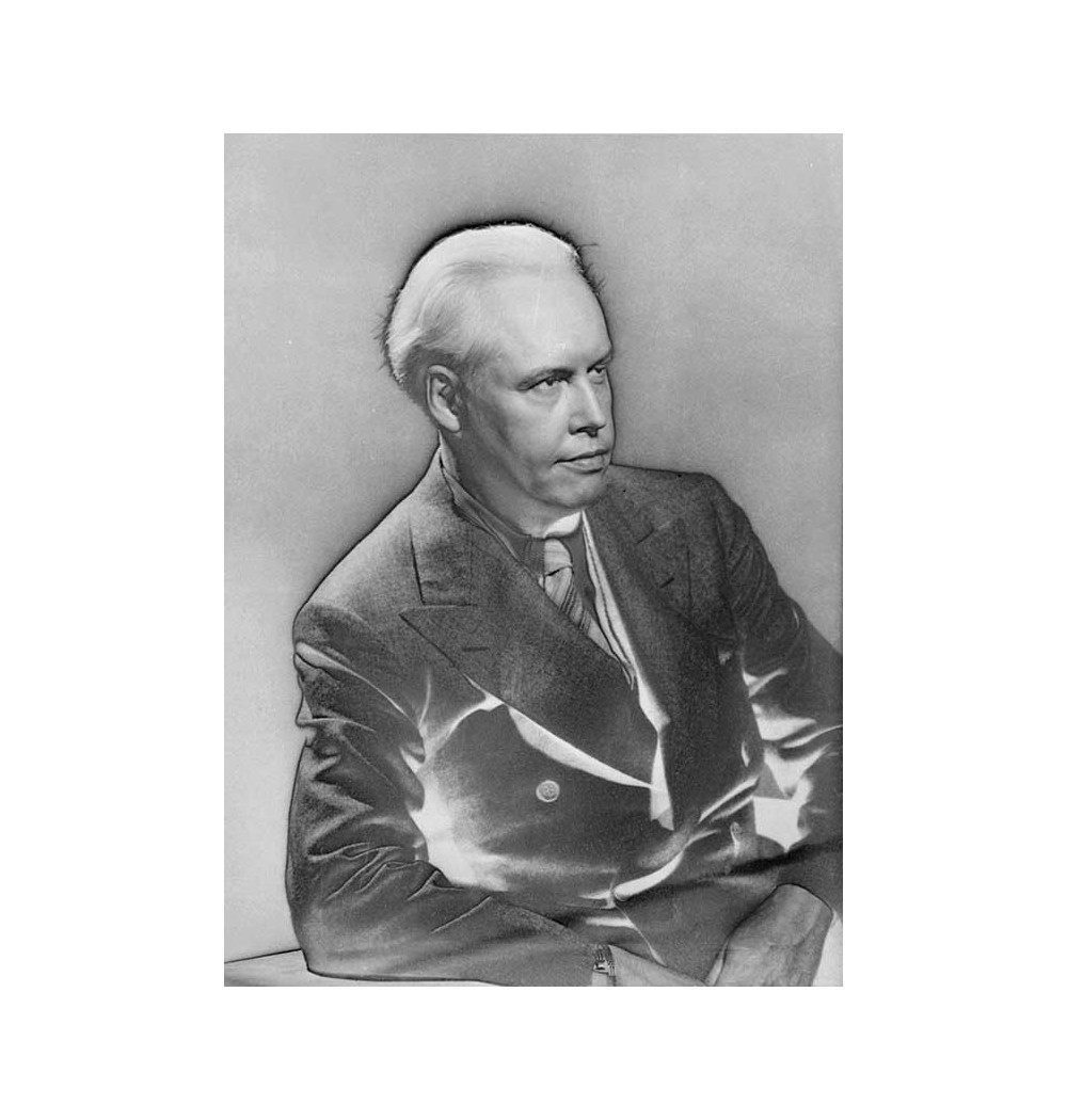 profile portrait man solarization suit white hair in the back tie lying on his elbow