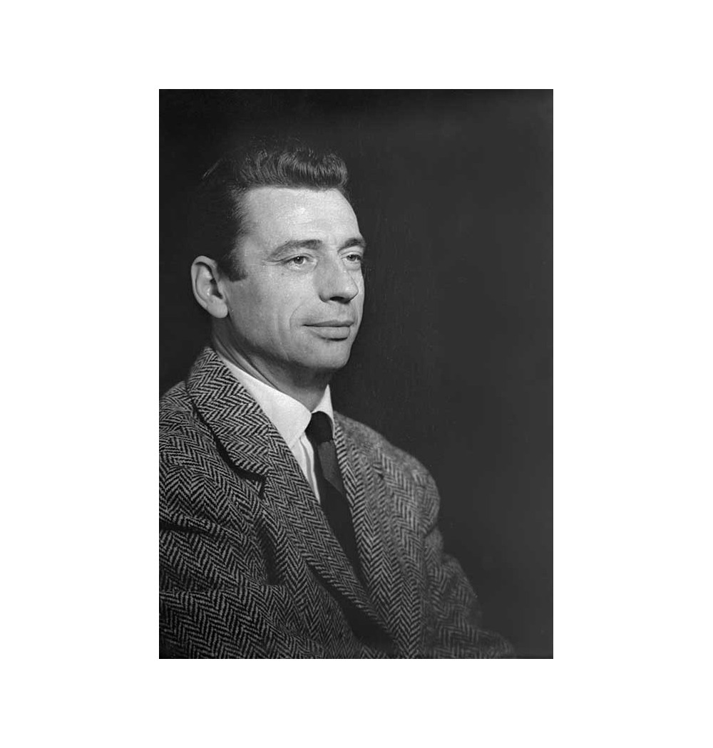 profile portrait of Yves Montand in smart suit tie half-length shot