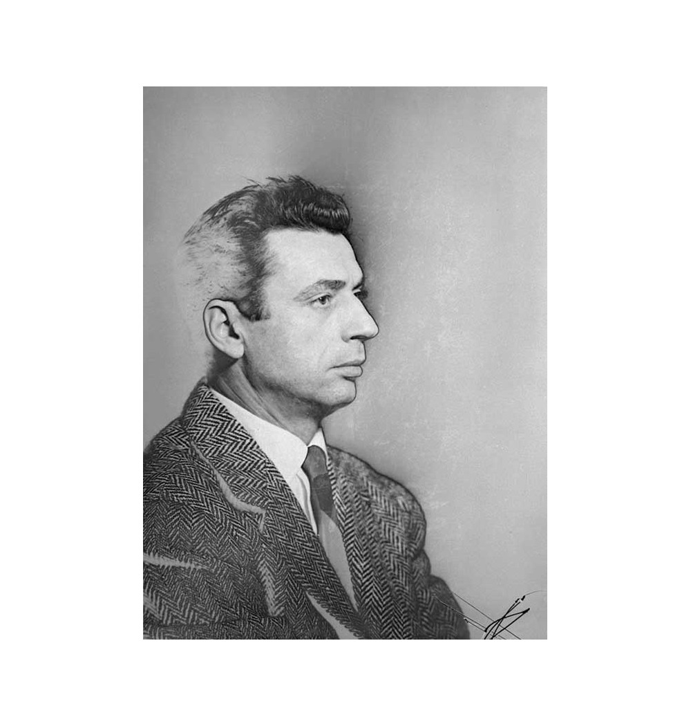 profile portrait of Yves Montand solarization suit tie